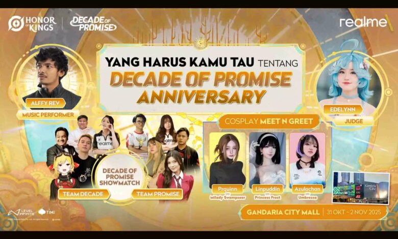 Acara Honor of Kings 10th Anniversary Indonesia akan berlangsung selama tiga hari pada 31 Oktober–2 November 2025, mulai pukul 10.00 WIB di La Piazza, Gandaria City Mall, Jakarta Selatan. Acara ini gratis dan terbuka untuk umum, menghadirkan beragam aktivitas seru mulai dari mini games berhadiah merchandise eksklusif, kesempatan berfoto bersama cosplayer Honor of Kings, menyaksikan keseruan kompetisi antar karyawan hingga pelajar, meet & greet sambil menyaksikan KOL Showmatch, serta penampilan musik spektakuler dari Alffy Rev.