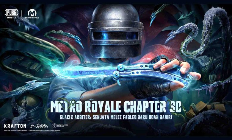 Metro Royale Chapter 30 PUBG Mobile resmi dirilis. Hadirkan senjata melee fabled Glacix Arbiter, upgrade damage senjata, item baru, dan gameplay makin brutal.