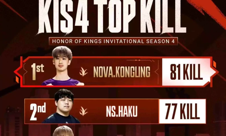 Daftar Top Kill KIS4 Honor of Kings Invitational Season 4 menghadirkan Nova Konglung sebagai raja kill. Simak performa para bintang esports yang mendominasi turnamen bergengsi ini.
